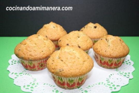 Tiene azúcar moreno, huevos, harina, levadura, aceite de girasol y pepitas de chocolate. Puedes encontrar loas pasos a seguir en Cookpad.