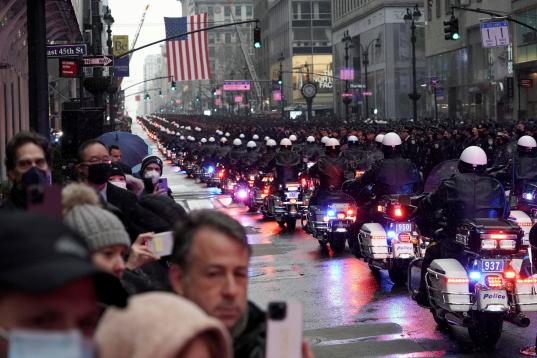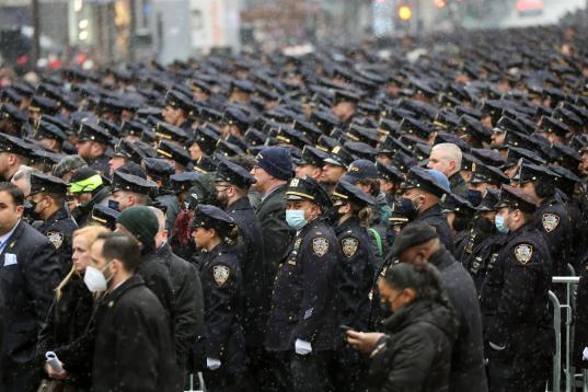 NEW YORK, NEW YORK - JANUARY 28: Thousands of police officers from around the country gather at St. Patrick's Cathedral to attend the funeral for fallen NYPD Officer Jason Rivera on January 28, 2022 in New York City. The 22-year-old NYPD officer...