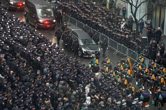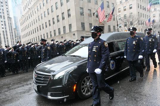 El impresionante y emotivo funeral en Nueva York por un agente de la Policía muerto en un tiroteo