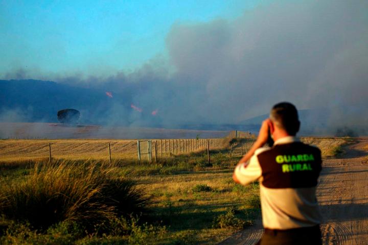 Este incendio, que se inició a las 18:10 horas de este domingo y que ya ha afectado a unas 300 hectáreas de masa arbolada, no ha alcanzado a núcleos urbanos y se espera que continúe así.