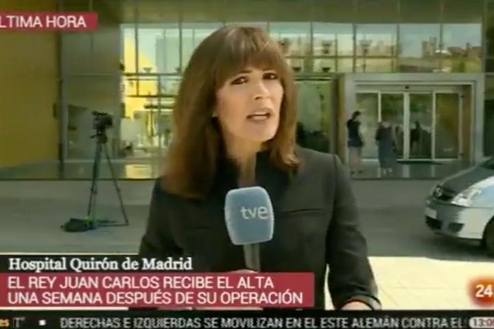 Lara Siscar ha sido la periodista enviada por TVE para cubrir el alta hospitalaria del rey Juan Carlos, que ha abandonado el Hospital Quirón de Madrid una semana después de ser operado del corazón.