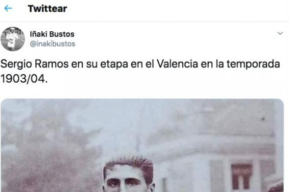 “Sergio Ramos en su etapa en el Valencia en la temporada 1903/04”, escribió el tuiterio junto a la foto, que lleva 2.400 retuits y 7.400 ‘me gusta’ en un día.
