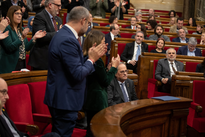 El president solo ha recibido el respaldo de su grupo. Los representantes de Junts se han negado a votar las cuentas de la Cámara para 2020, que finalmente no han sido aprobadas, en solidaridad con su jefe de filas. El president ha advertido de las consecuencias a ERC: “Confío que este Parlament rectifique esta irregularidad de forma inmediata. Si no, pondrán en riesgo la continuidad de las instituciones”.
