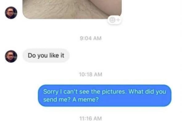 “Perdona, no puedo ver las fotos, ¿qué me has enviado, un meme?”, indica la chica.