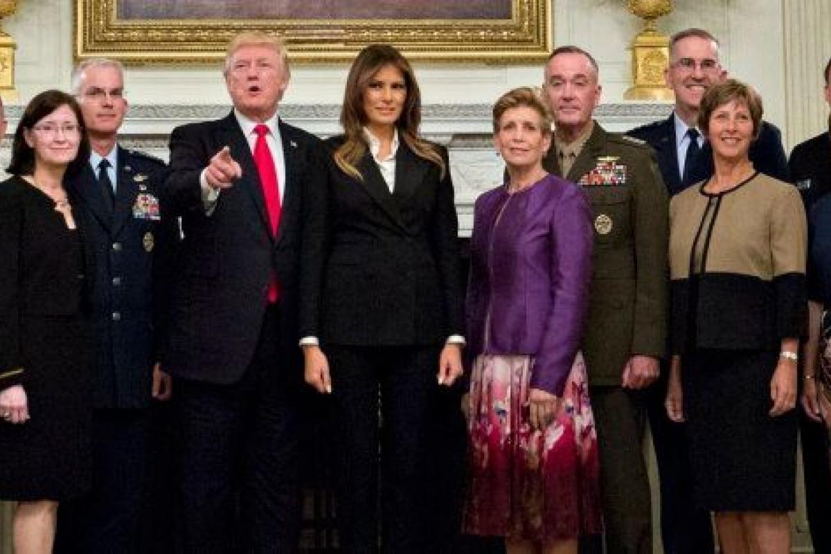 Trump ha hecho el comentario durante una sesión de fotos en la Casa Blanca mientras él y la primera dama Melania se preparaban para cenar con jefes militares y sus esposas, después de una reunión con los oficiales.