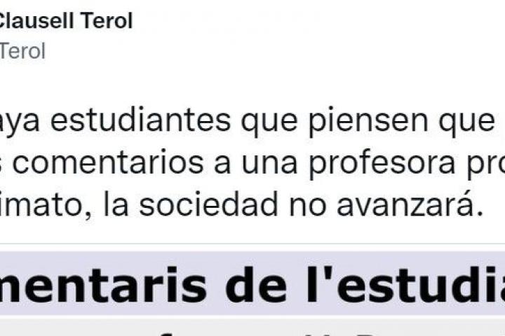 “Mientras haya estudiantes que piensen que pueden hacer estos comentarios a una profesora protegidos por el anonimato, la sociedad no avanzará”, ha reflexionado Clausell junto al mensaje enviado.