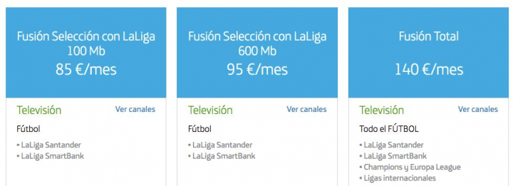 Movistar Fusión Selección con LaLiga: 85 ó 95 euros al mes.
