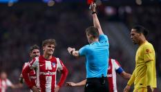 El Atlético se quedó con diez jugadores a los 37 minutos cuando Felipe cortó, con una patada sin intención de jugar el balón, una contra de Jota. El colegiado le iba a sacar tarjeta amarilla, pero tras llamar a Felipe en tres ocasiones y éste no hacerle caso, le mostró la roja directa.