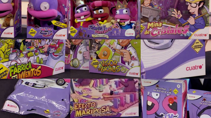 Salvador hizo un recorrido por mesas repletas de todo tipo de productos del programa. Primero, con todo peluches de Trancas y Barrancas, después con los juegos de mesa y experimentos de Flipy, Marron y compañía, hasta llegar a productos tan dispares como una colección de ropa interior, juegos de cama, accesorios para el coche o una sandwichera. En prácticamente todos ellos, hasta en 15 productos, aparecía el logotipo de Cuatro. Algo casi impensable en una cadena de Atresmedia, que compite directamente con Mediaset.