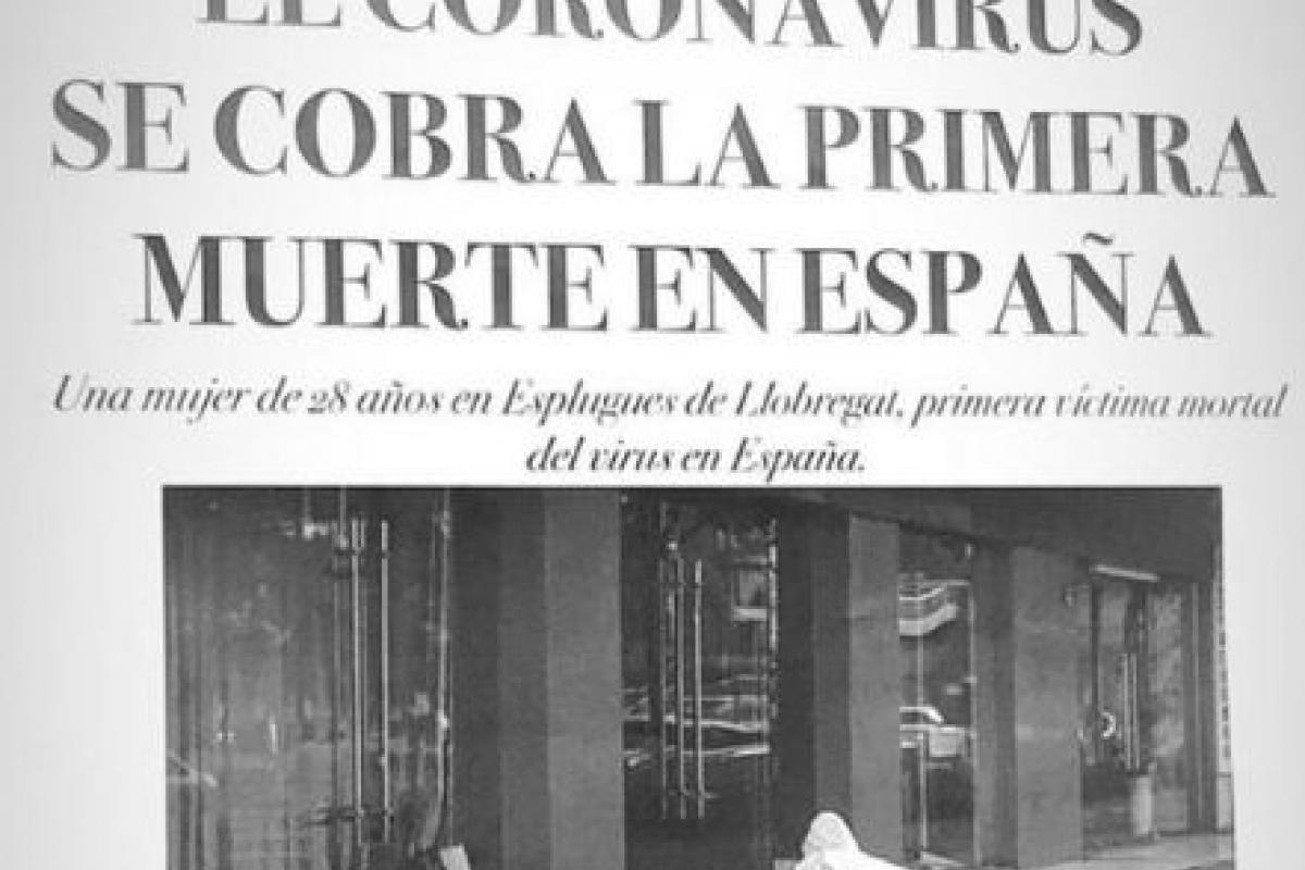 “Una mujer de 28 años de Esplugues de Llobregat, primera víctima mortal del virus en España”. “En realidad, la víctima ha sido asesinada por su pareja. Tranquilo, puedes seguir preocupándote por el coronavirus”, continúa la noticia.