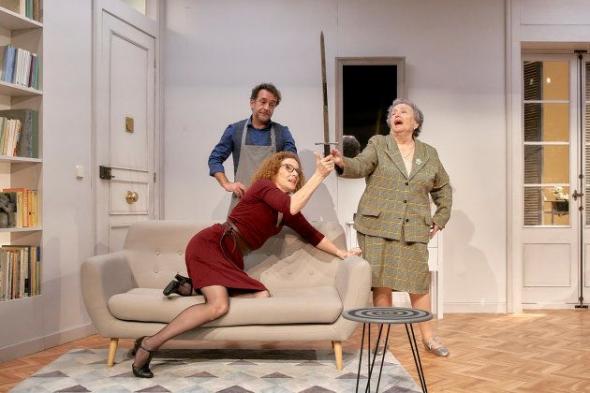 Sí. Es y no es una comedia de Jardiel o de Mihura. Esas comedias del absurdo de extrañas familias y sombreros de copa. Comedias que se estrenaban cuando no se podía hablar si no era para contar lo que otros, los que mandaban, decían que nos pasaba. Primera llamada de atención, pues, cuando un autor como Mayorga tiene que recurrir a ese humor de entonces para poder hablar ahora, ¿no hay que preguntarse qué algo pasa?