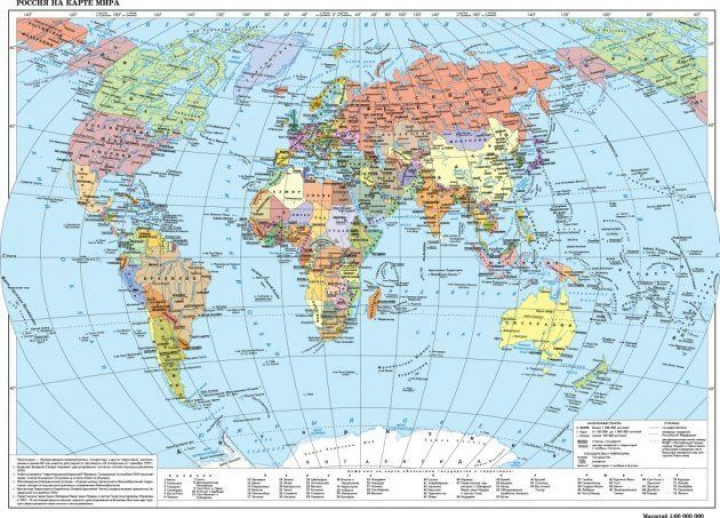 En lo que se refiere a la visión rusa del mundo, la proyección dominante en el país, la Karta Mira, sitúa a Moscú en el centro del mapa y a la masa euroasiática ocupando más de la mitad de este, de manera que el continente americano aparece estirado y estrecho.