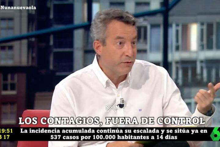 “Con esta estrategia el que aguanta el palo al final es el sistema sanitario, es que no hay nada entre la vacunación y que venga la gente al hospital. No tenemos una estrategia de test, de rastreo eficiente. No la hay. Al final los que aguantan el palo somos los sanitarios”, ha expresado el médico en el plató del programa.