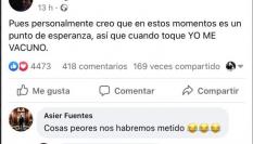 En un mensaje anterior, el médico ya había avisado de que en los próximos días se pueden mezclar en los hospitales una tercera ola a la vuelta de las vacaciones con una mayor transmisibilidad “y por ende mayor presión asistencial” con los “efectos secundarios de la vacuna, que significa más consultas a urgencias y posibles bajas del personal sanitario”.