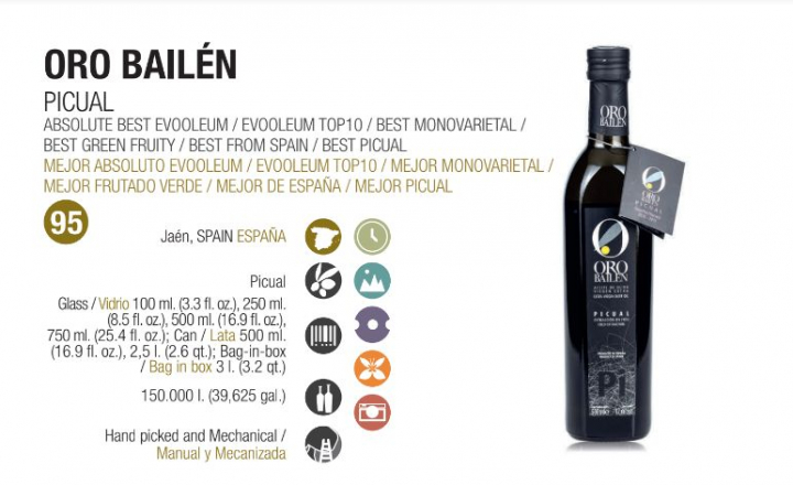 No ha sido el único galardón que ha obtenido este producto de la empresa Aceites Oro Bailén Galgón 99, S.L.U. Este aceite también ha sido reconocido como el mejor monovarietal, el mejor frutado verde, el mejor aceite de España y el mejor picual. Una botella de 500 ml cuesta 9,54 euros a través de la tienda de página web de la compañía.