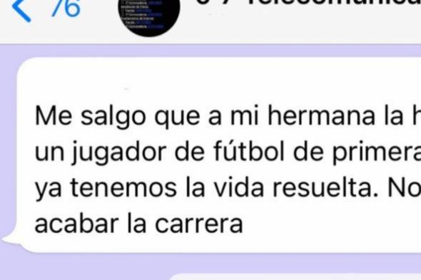 En dicho mensaje se puede leer: “Me salgo que a mi hermana la ha preñado un jugador de fútbol de primera división y tenemos la vida resuelta. No renta acabar la carrera”.