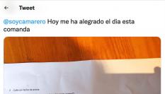 Captura del tuit viral de @soycamarero.TWITTER / @soycamarero