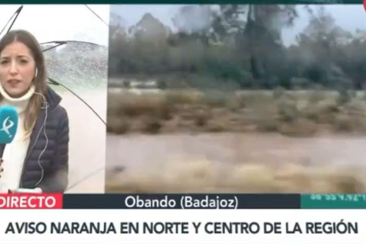 Asimismo, mencionaba varias veces el nombre de “Obando”, la localidad en la que se encontraba grabando el directo, donde “no paraba de caer agua”. Y así continuó relatando algunos de los cortes en los accesos de las localidades colindantes.