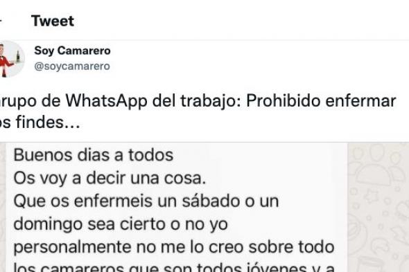 El dueño de un establecimiento de hostelería ha indignado a decenas de miles de personas en Twitter con el mensaje de WhatsApp que mandó a sus empleados, a los que amenazaba si se ponían enfermos en fin de semana.