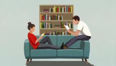 Un niño arrodillado junto a una papelera, en la que hay abandonados un muñeco de Batman y otro de Spider-Man, levanta triunfal la muñeca de una enfermera con capa de superhéroe.