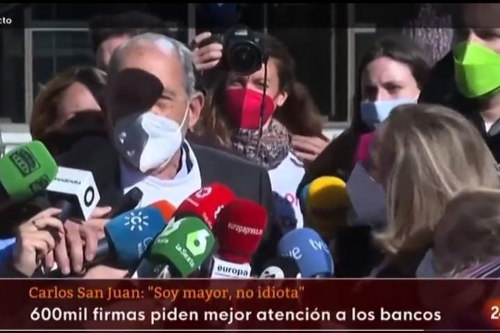 Ha ocurrido a las puertas del Ministerio de Economía, donde estaba atendiendo a los periodistas Carlos San Juan, el hombre de 78 años impulsor de la campaña ‘Soy mayor, no idiota’ por un trato “más humano” en los bancos.