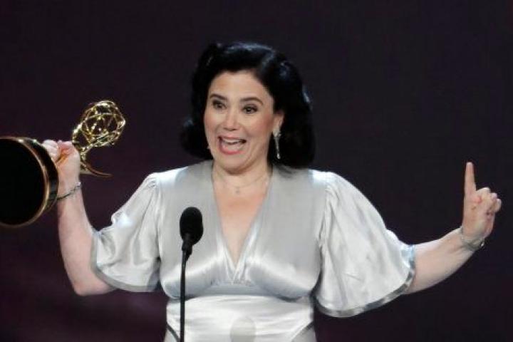 La actriz Alex Borstein se vino muy arriba este 17 de septiembre cuando escuchó su nombre como ganadora del Emmy a la Mejor actriz de reparto en comedia por su papel en La maravillosa Señora Maisel. La intérprete tiró de dramatismo al levantarse de la butaca, se desató la blusa que llevaba a juego con el vestido e hizo un movimiento de baile ante la cámara sacudiendo el pecho.