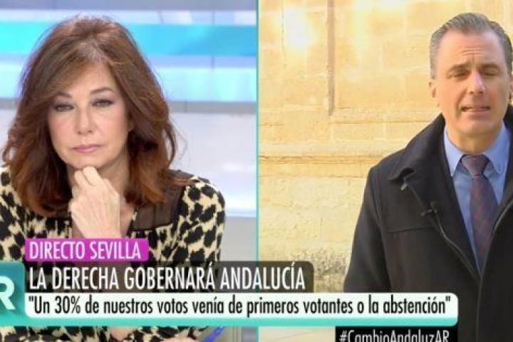 Ana Rosa Quintana ha entrevistado en El Programa de AR (Telecinco) a Javier Ortega Smith, secretario general de Vox, para preguntarle por el reciente acuerdo con el Partido Popular que permitirá a Juanma Moreno ser presidente de Andalucía.