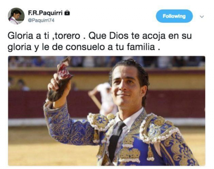 En redes sociales algunos han celebrado la muerte de Fandiño, algo que ha enfadado mucho a Francisco Rivera, cuyo padre Paquirri, también murió en una plaza en 1984.
