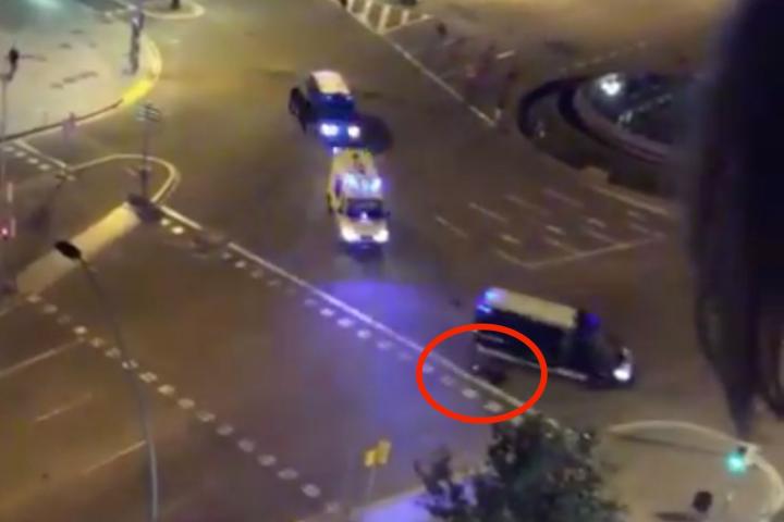 Este agente se lesionó al caer de un furgón policial, como demuestran varios vídeos grabados por vecinos y testigos: