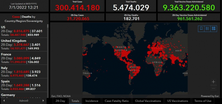 Según el recuento independiente que realiza la Universidad Johns Hopkins, con datos recopilados en diferentes fuentes oficiales, el número de contagios conocidos, ha alcanzado este viernes los 300.338.680.