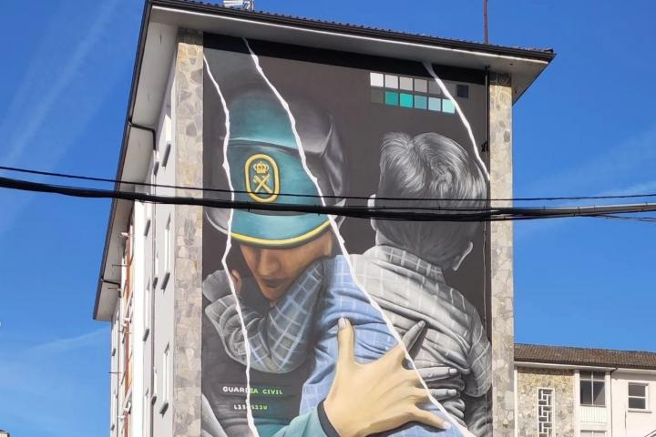 Diego As sigue empeñando en convertir cada fachada de Lugo en una pieza artística digna de un museo. Este artista urbano gallego ha realizado un mural de 14 metros de alto dentro del cuartel de la Guardia Civil de la ciudad.