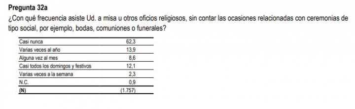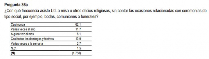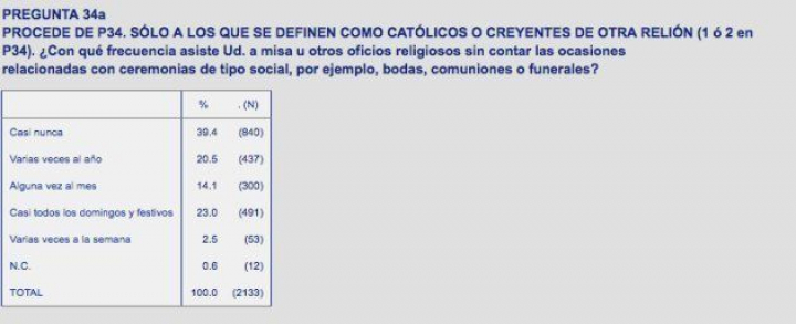 El CIS ha vuelto a preguntar a los españoles sobre sus orientaciones religiosas y sobre cuánto acuden a los oficios religiosos.
