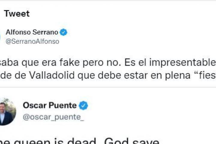Alfonso Serrano, secretario general del PP de Madrid, ha cargado contra el alcalde de Valladolid, el socialista Óscar Puente, por un tuit que éste publicó poco después de que se conociese la muerte de Isabel II.