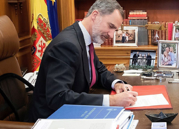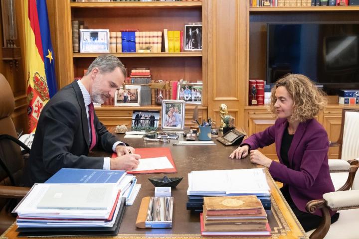 La Casa Real colgó este martes la imagen del rey Felipe VI firmando, en presencia de Meritxell Batet, la presidenta del Congreso de los Diputados, el Real Decreto en el que nombra como presidente del gobierno a Pedro Sánchez.