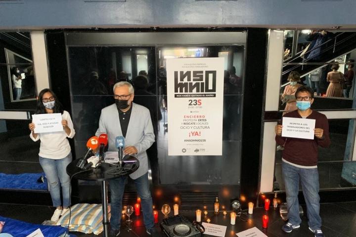 Este miércoles, Madrid, con el Teatro Barceló como escenario principal, y otras ciudades han acogido actos de protesta bajo el lema Insomnio: nos habéis quitado el sueño. Las movilizaciones, desarrolladas durante toda la noche, llegarán hasta el jueves. “Es la primera pero no será la última, porque si no cambian las cosas de aquí al final de año cae el 69,7% del sector”, confiesa Vicente Pizcueta, portavoz de ‘Noche Madrid’, la entidad que engloba a empresarios y trabajadores del “mal llamado” ocio nocturno.