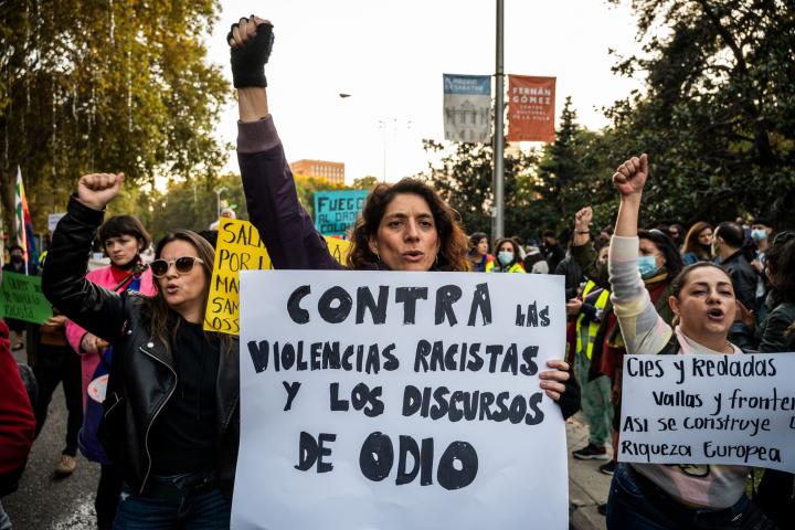 El último Boletín de Monitorización del discurso de odio en Redes Sociales, elaborado por el Observatorio Español del Racismo y la Xenofobia (OBERAXE) durante los meses de septiembre y octubre de 2021, recoge 704 contenidos de discurso de odio identificados y comunicados a Facebook, Twitter, Youtube, Instagram y TikTok. Un tercio de ellos era antimigrantes, y el grueso restante se divide prácticamente en contenidos antimagrebíes (23%) y en contra de los menores extranjeros no acompañados (24%). “El discurso de odio en las plataformas estudiadas sigue estando influido en gran medida por la agenda mediática y política del momento”, concluye este informe.