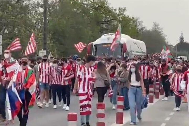 En un contexto de confinamiento perimetral y prohibición de grandes actos sociales por Semana Santa, este Jueves Santo se han visto centenares de aficionados del Athletic, bufanda en mano (también mascarilla), vitorear a sus ídolos y hacer un pasillo al autobús del equipo en su salida al aeropuerto. De distancia de seguridad y limitación de personas ni hablamos.