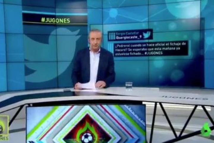 Ya al final del programa, un espectador le preguntó: ”¿Cuándo se hace oficial el fichaje de Hazard [por el Real Madrid]? Se esperaba que esta mañana estuviese ya fichado”.
