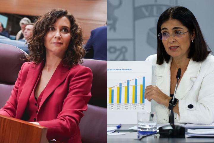 Con dos gráficos, además, ha intentado desmontar la estrategia sanitaria de Ayuso en la Comunidad de Madrid. En la primera, ha mostrado que el número de plazas de formación sanitaria especializada ha crecido bajo el gobierno de Sánchez. “Antes de 2018, eran más las personas que salían de las facultades de medicina que la oferta de plazas. Con Sánchez, es al revés”. De esta manera, Darias ha querido rebatir la acusación de Ayuso de que faltan médicos en España y que eso es un problema a resolver por el Gobierno.