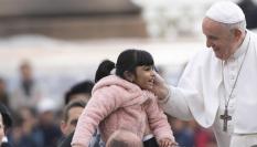 Pope Francis caresses a baby after his weekly general audience in the Paul VI hall at the Vatican, Wednesday, Jan. 7, 2015. (AP Photo/Alessandra Tarantino)