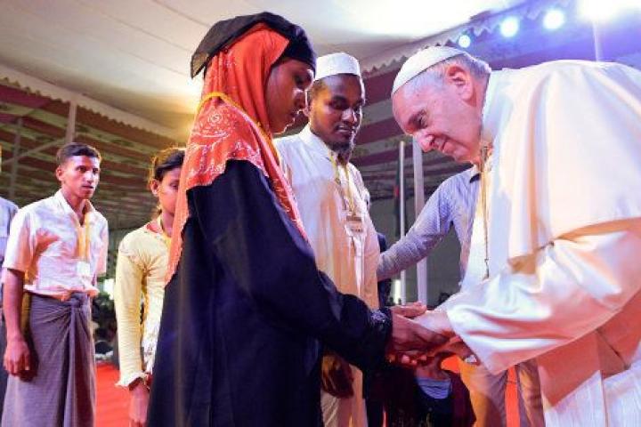 El papa Francisco ha utilizado por primera vez en público durante su viaje a Asia el término "rohingya" al asegurar de forma improvisada que "la presencia de Dios hoy también se llama rohingya", según informa Reuters. Durante un encuentro interreligioso en Bangladesh -en el que ha podido saludar a 16 personas de esta minoría musulmana que residen en Cox's Bazar, donde se concentran la mayor parte de los campos de refugiados- les ha pedido perdón en nombre de todos aquellos que les han perseguido y lastimado.