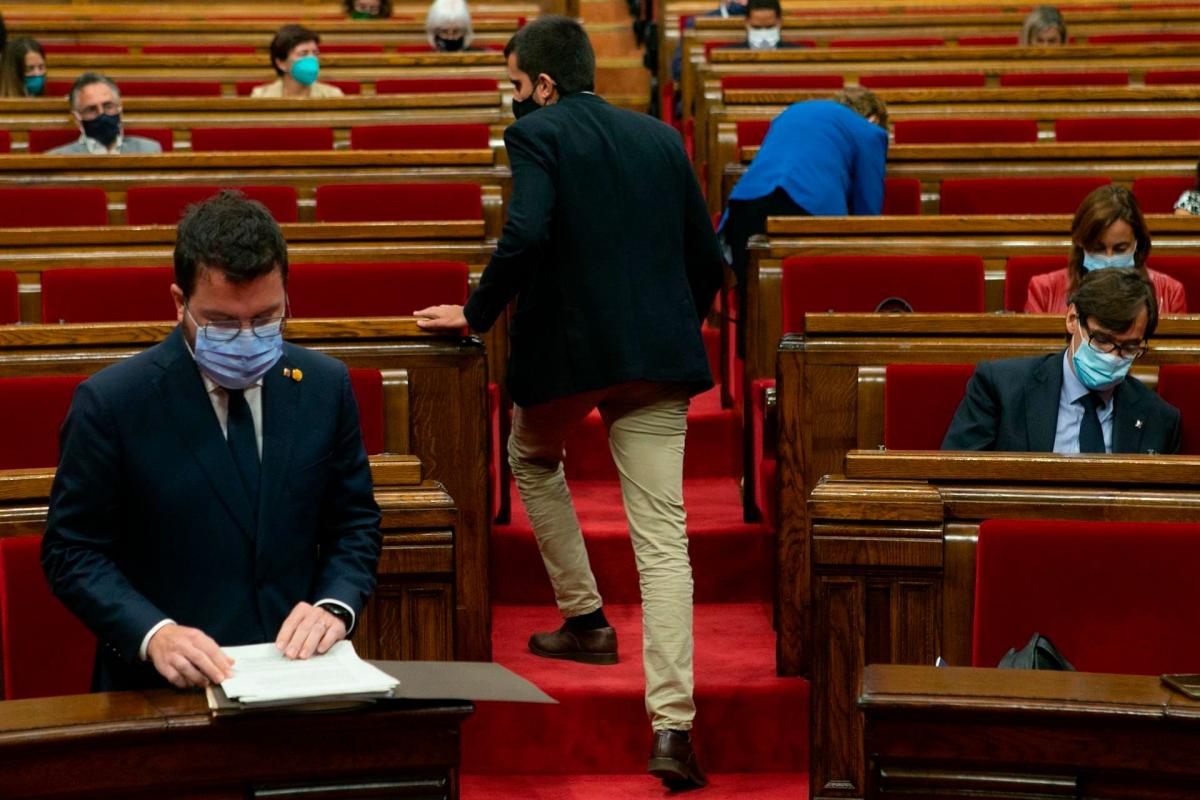 “La nueva Generalitat ha comenzado a poner las bases de la transformación y la sacudida que el país necesita en todos los ámbitos”, dijo Aragonès desde el atril del Parlament.