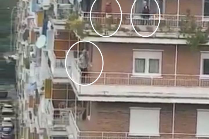 Es el caso de estos tres vecinos que juegan con la ventaja de tener un enorme balcón que hace esquina y que les permite convertir los paseos en caminatas.