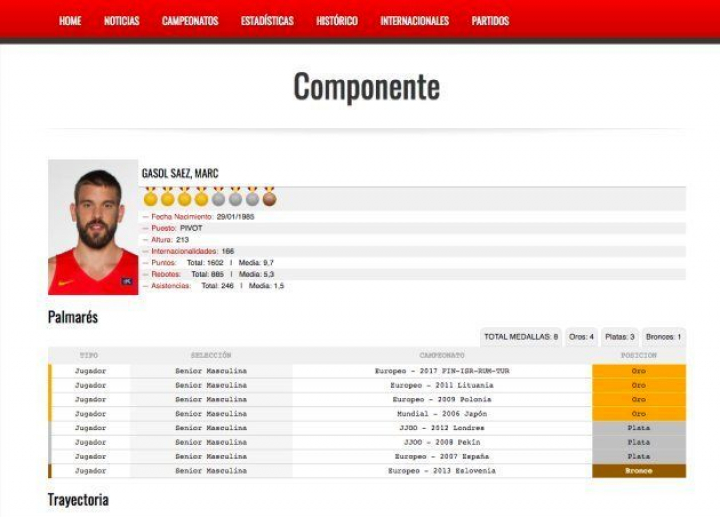 Así, si se entra en la sección "histórico" del equipo nacional, figura que La Roja ha terminado en el primer puesto del Eurobasket, cuya final se disputará el domingo 17. Aquí puedes verlo: