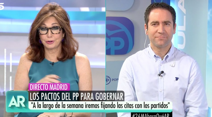 El peculiar bordado de la camisa de García Egea llama la atención hasta a Ana Rosa Quintana