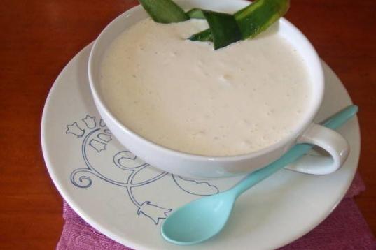 En realidad, son dos platos en uno: el gazpacho por un lado y el tzatziki por otro. Según su autor, "una variante de este gazpacho sería el tzatziki, una salsa griega-turca que se hace igual, pero con ajo y limón en vez...