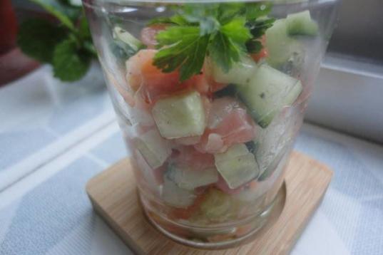 Un aperitivo sencillo y para el que se necesitan pocos ingredientes. En vasitos individuales es perfecto como tapa. La receta completa, aquí.