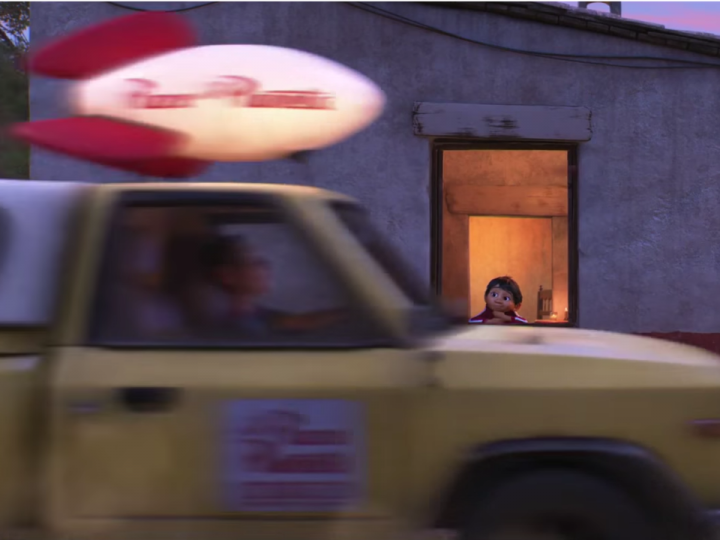 Esta camioneta hace su aparición en la nueva película de Pixar, Coco, cruzando por la pantalla mientras Miguel, el protagonista, mira a través de la ventana. Pero no te dejes engañar, en esta escena hay un cambio pequeño pero muy revelador. Es prácticamente imposible darse cuenta, incluso si se mira a la imagen sin movimiento:
