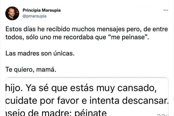 El periodista, muy activo en Twitter, ha enamorado a miles de personas al compartir el mensaje que le ha mandado su madre desde España. “Estos días he recibido muchos mensajes pero, de entre todos, sólo uno me recordaba que ‘me peinase’. Las madres son únicas. Te quiero, mamá”, ha escrito Sicilia en la red social del pájaro azul.