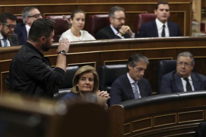 La tristeza y la preocupación son los sentimientos que reinan entre el grueso de sus señorías, con una cierta aceptación del fatalismo y la atención puesta en los días y los meses posteriores al 1-O. Todo aderezado con las bobaditas de cada jornada. Que si la respuesta de Rufián a la prensa cuando lo interrogan :"Mordor, Mordor" espetaba a los periodistas, mientras el Harry Potter que lucía en su camiseta no salía de su asombro. Mordor (el lugar donde reina el malo de El señor de los Anillos) frente a Voldemort, el malo de la serie de Harry Potter.